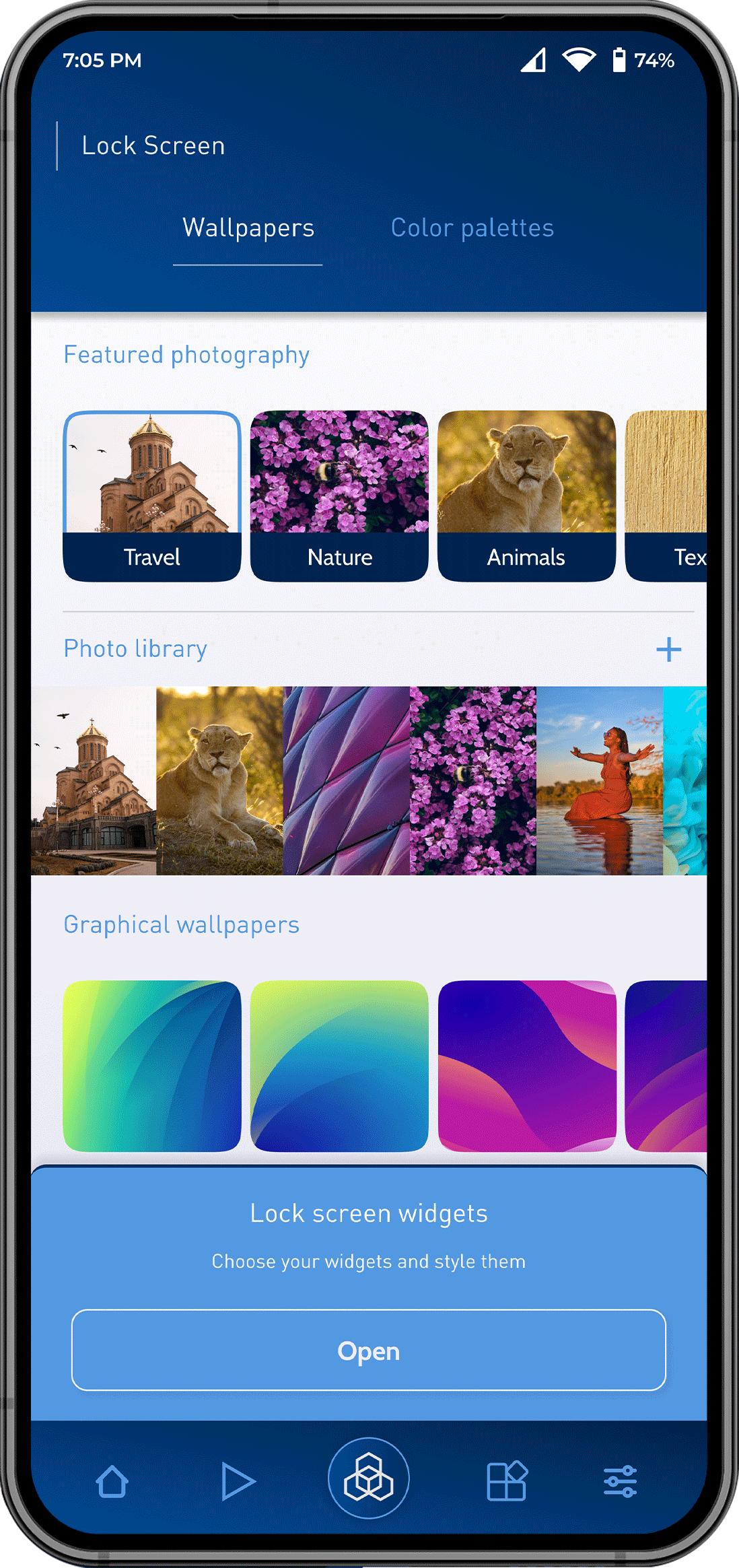 Choose from a wide variety of wallpapers in all in and configure a custom look for your phone background and lock screen.